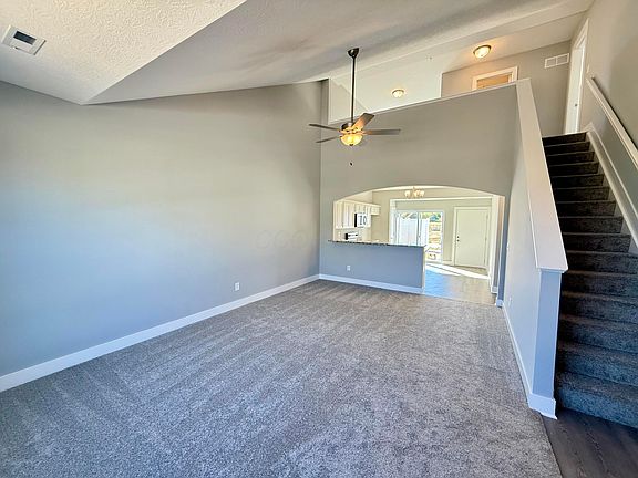 Enjoy a desirable first-floor primary suite with private bath, convenient first-floor laundry, and an open great room with cathedral ceiling that flows into the spacious eat-in kitchen. Step outside to a private patio and attached two-car garage. The second story has a Guest Bedroom and a Loft for crafting, a 2nd family room, or an office. Stainless steel appliances are included. Conveniently located in Newark—just 30 minutes from New Albany.
