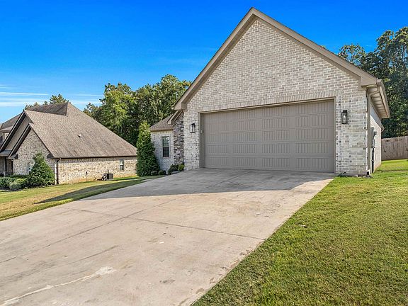 Welcome to 1993 Windy Lane, a stunning retreat in Jonesboro's desirable Valley View Manor. This thoughtfully designed stone-and-brick home offers 2,001 square feet of well-planned living space with a split floor plan featuring 4 bedrooms and 2.5 baths. Perched on an elevated lot, the home provides beautiful landscaping and peaceful, tree-lined views best enjoyed from the covered wood deck. Just minutes from Highway 49 South, you'll love the quick access to schools, shopping, and all of your favorite local amenities. The exterior showcases timeless curb appeal with a stone-and-brick facade, an architectural shingled roof, seamless gutters, a freshly sealed driveway, and a garage finished with epoxy flooring and urethane coating. Inside the garage, you'll find attic access, built-in storage, a storm-shelter system, and plenty of room for two full-size vehicles. Step inside through striking double mahogany doors with glass accents into a welcoming foyer. The living room impresses with soaring ceilings, wood floors, and a cozy fireplace that is perfect for Arkansas' cooler nights.