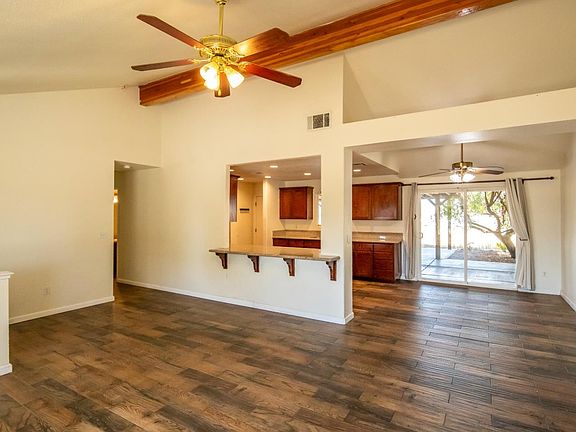 Nestled in Madera Lakes, this 3-bed, 2-bath home spans nearly 2 acres. The open floor plan invites natural light, with a cozy fireplace in the living room. The primary bedroom features an en-suite bath and ample closet space.