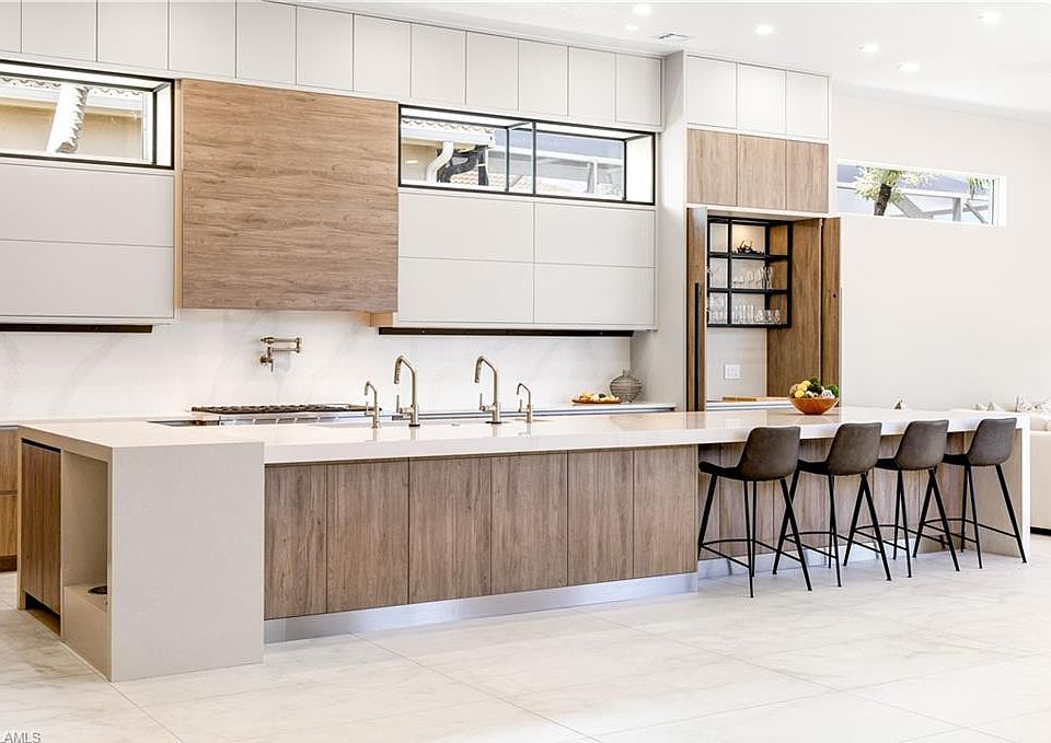 Waterfall islandSaltwater poolThree car garageGuest ensuite bedroomsFloor to ceiling designQuartz and quartzite countersSilestone calacatta gold quartz