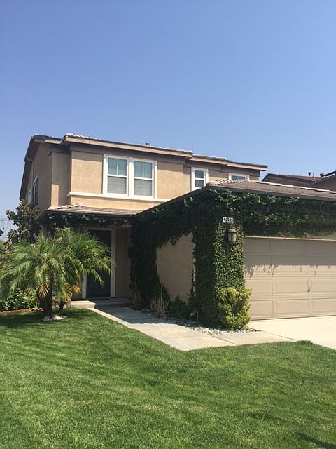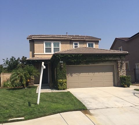 This Beautiful home was just built in 2006 and is nestled on a quiet cul-de-sac in a serene neighborhood. Here are just a few of its many features: Its lush landscaping, colorful planters, and miniature palm trees enhance its eye-catching curb appeal. Open concept floor plan that is in "MOVE-IN-CONDITION" with smooth ceilings, and engineered wood flooring throughout most of the first floor.The spacious living room is bathed in natural light from a multitude of windows. A double sided fireplace. The kitchen has recessed lighting, abundant cabinets, pantry, granite counters with back-splash, large center island with breakfast bar, built-in stainless steel appliances, dual basin stainless steel sink, tile flooring, plus the adjoining dining area with its direct patio access. Large family room next the kitchen, and with its recessed lighting.3 bedrooms upstairs. The large master suite has a vaulted ceiling, spacious walk-in closet with ample shelves, plus a beautifully appointed bathroom with soaking tub, glass enclosed shower, and mirrored "His & Her" vanity. A total of 2½ bathrooms; the ½ is located on the first floor for your guests . The second story loft has its built-in furniture, perfect as a recreation room, or you could turn it into a 4th bedroom. Laundry room in the first floor. Security cameras. Pool size backyard with some fruit trees. Oversized concrete driveway and 2 car attached garage with automatic door.