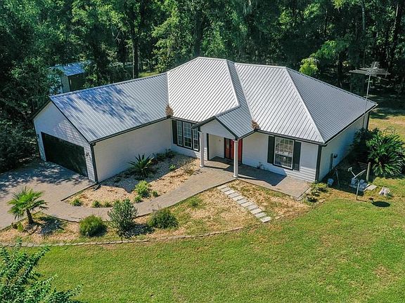 Welcome to Bellamy Road Estates! This charming 3-bedroom, 2-bath home sits on just under 2 acres and offers an ideal blend of comfort, functionality, and space. With NO carpet and luxury vinyl plank (LVP) flooring throughout, maintenance is a breeze. Enjoy the convenience of a 2-car garage plus an additional metal building—perfect for storage, hobbies, or a workshop. Location is everything! Situated close to I-75, local campgrounds, and just a short drive to restaurants and shopping, this home makes a fantastic option for an Airbnb, retirement retreat, weekend getaway, or primary residence. The 2020 metal roof adds lasting durability, and the expansive yard offers endless possibilities—whether you want space for animals, recreational toys, or your own custom outdoor setup. Don't miss out on this versatile property with so much to offer!