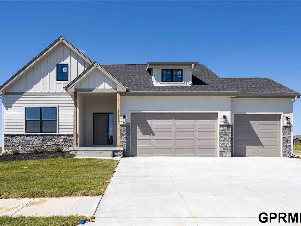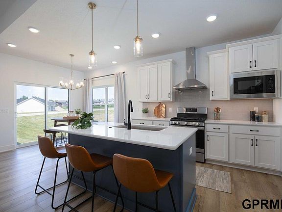 Welcome to the Mullen II by THI Builders, a spacious ranch plan with 5 bedrooms, 3 baths, on a flat lot in Millard Schools’ North Streams development. The open-concept main floor features vaulted ceilings, abundant natural light with tons of windows, and a stone-to-ceiling electric fireplace. The kitchen shines with quartz counters, SS gas appliances with hood, soft-close cabinetry, built-in microwave, backsplash, walk-in pantry, and oversized island. Retreat to the primary suite with double sinks, tiled shower, and walk-in closet. Two more bedrooms complete the main level. The finished lower level adds a large rec room, 2 bedrooms, full bath, and generous storage. Enjoy outdoor living on the covered patio. Buyers love the pantry, natural light, stairway door to basement, and extra kitchen cabinetry. All high-end finishes come standard plus THI’s builder warranty for peace of mind. Completion Jan 2026.
