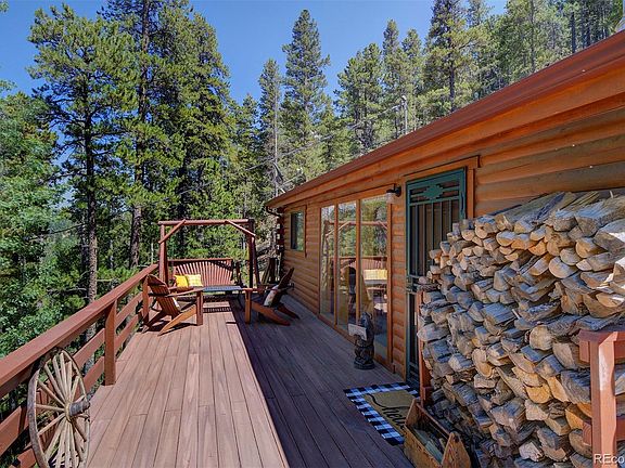 PRICE IMPROVEMENT! Oh my, this is the cutest log cabin and ready for you to move in! Situated in Elk Creek Highlands Subdivision in scenic Park County, this property is perfect for a full-time or part-time residence. Set on a corner lot in a cul-de-sac, it spans over an acre. The owners have meticulously cared for this home for 25 years, with many upgrades including a newer roof, furnace, and appliances. This cozy cottage is being sold partially furnished (please ask for the list of furniture items). It features a great open floor plan with two nice-sized bedrooms, a full bath, a laundry closet with a stackable washer and dryer, and utility closets with easy access to the furnace and water heater.  Outside, there is a spacious Trex deck, the perfect place to enjoy the fresh mountain air, gorgeous views, and abundant wildlife. There's plenty to do in Bailey and the surrounding areas, with proximity to Breckenridge ski area and shopping in the nearby town of Bailey or just minutes to Conifer.  You won't want to miss the opportunity to own this charming property! Call for a private showing or set up a viewing today.