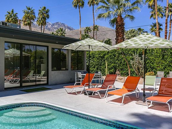Own a Slice of Palm Springs History: Iconic Alexander Mid-Century in Twin Palms. Step into a light-filled haven crafted by the legendary Alexander Construction Company. This 2,534 sq ft gem, nestled on a sprawling 10,890 sq ft corner lot in the heart of Twin Palms, embodies the quintessential Palm Springs lifestyle. Revel in the expansive open layout, soaring ceilings, and walls of glass that seamlessly blend indoor and outdoor living. Three luxurious ensuite bedrooms, plus a versatile den, offer ample space for family and guests. The heart of the home is a stunning kitchen with a bar, perfect for entertaining. Outside, a private oasis awaits: a heated pool and spa, built-in BBQ, outdoor shower, and a fire pit, all framed by lush landscaping and a fully fenced, hedge-lined yard. The primary suite is a true retreat, boasting a walk-in closet, oversized bath, and a private lanai. This is more than a home; it's a lifestyle. Fee simple land and a proven vacation rental history with permit available make this an exceptional investment.