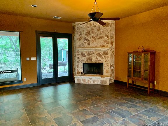 Corner rock fireplaceFully fenced gated compoundHigh ceilingsSolid oak custom cabinetsCeramic tile floors