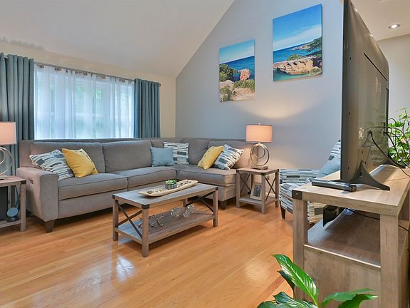 OFFER DEADLINE Mon. 8th at noon. This condo has a LOT more living space than you might expect. Step inside and you'll immediately feel how open and welcoming it is, with its cathedral-ceiling living room and a view straight out to the rear patio. The next thing you'll notice is how well-maintained it is, and as you look around one word will echo in your mind: Impeccable. The light oak floors & skylights help keep the space light and bright, and the updated kitchen, with 6-burner stove & double oven, will keep even the fussiest cook happy. A slider leads right out to the expansive patio--the perfect spot for outdoor dining, lounging with the latest mystery novel, or harvesting from your own potted herb and vegetable garden for a mini farm-to-table experience. You have your choice of two bedrooms on the first floor, another bonus room upstairs, or a third room in the basement. With the extra loft space and an additional large finished basement space with a three-quarter bath, the layout offers tremendous versatility for offices, music room, workouts, craft/hobby space, or parties. And there's still lots of storage! Set amidst green fields and woods, the complex feels rural while still being close to civilization, and with only six units total, it has a very neighborly feel as well. All appliances are included, and the sellers are willing to leave much of the furniture and personal items, so you and your pets can waltz right in after closing and barely have to unpack a box!