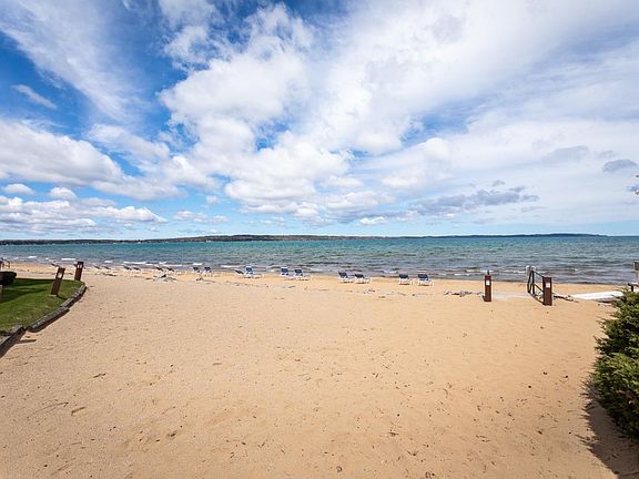 Nestled on the coveted "Miracle Mile" beach, this fully furnished, turn-key, beachfront condo offers the perfect combination of relaxation and investment potential. Located on the pristine shores of East Bay, this condo provides breathtaking bay views, direct walk-out access to the white sandy beach, and it's unbeatable location in Traverse City. "The Beach Condominiums" offers resort style amenities, including a sandy beach area, heated pool, and a hot tub. Unit 108 next door is also available for purchase offering a rare opportunity to have a door installed between them connecting the two units. This unit sleeps up to five. The kitchen and bathroom were completely gutted in 2022 and had a new water heater installed.