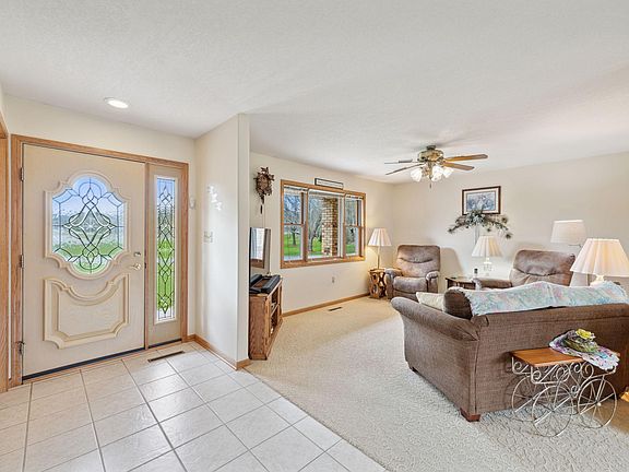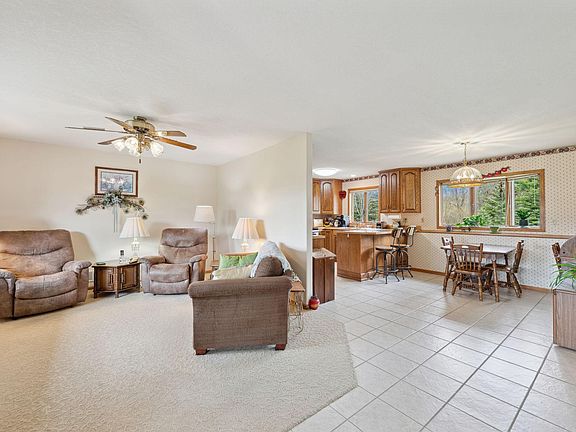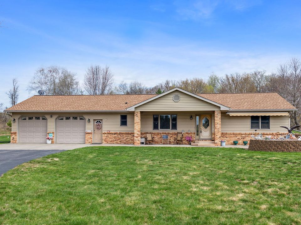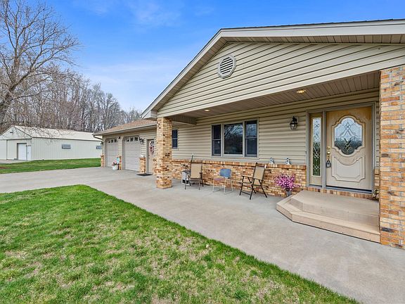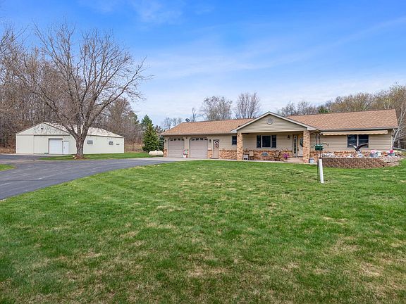 ENJOY ONE LEVEL COUNTRY LIVING! Well maintained 2BR, 2BA home tucked away on 1.29 acres. Conveniently located near trails & multiple lakes. Attached 2 car insulated & heated garage plus a 36x45 pole building with concrete & 220 amp service. Plenty of space for parking, hobbies and storage. New roof on house & shed, siding, furnace, AC, stainless refrigerator & range(2018). Quality built in 2000, in-floor heat with separate boilers for house & garage, covered patio with Sun Setter Awning, Andersen windows, solid core paneled doors, walk-in shower & a spacious open concept. This is country living with ease.