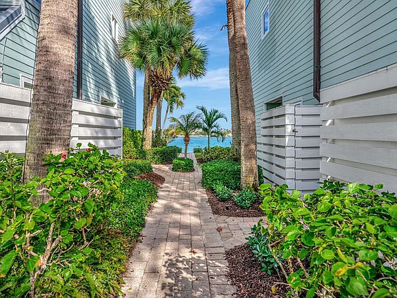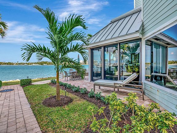 Experience the pristine blue waters of the Intracoastal with breathtaking views of Jupiter Island. Just minutes from the ocean via the Jupiter Inlet, Scrimshaw on the Bay offers a private oasis of only 21 Key West-style townhomes along the shoreline. This coveted 3-bedroom end unit boasts expansive, panoramic views and was fully renovated in 2024. The property features a brand-new boat dock and an extended patio with elegant pavers and landscape designed by Bloom Landscape. The garage is finished with durable epoxy-coated floors. Inside, the kitchen stands out with Italian porcelain flooring, custom solid wood Bremtown cabinetry with EuroSlab soft-close design, Cambria Clifton quartz countertops with a waterfall edge, and LED under-cabinet lighting. Top-of-the-line LG stainless steel appliances and programmable electric window blinds add modern convenience. Adjacent to the kitchen is a private barbecue patio. In the living room, the removal of the fireplace and relocation of the staircase enhance the open, airy feel and maximize the stunning views. The primary suite offers sweeping Intracoastal vistas, a custom walk-in closet, and a luxurious en-suite bath with Italian tile, Kate Spade lighting, a Grohe smart shower system, and a freestanding Sedona soaking tub.19950 Scrimshaw Way is your ultimate Florida retreat, perfect for kayaking, swimming, fishing, or paddleboarding right from your patio. Each unit includes an assigned dock space. Start your day with a spectacular sunrise and embrace the coastal lifestyle.