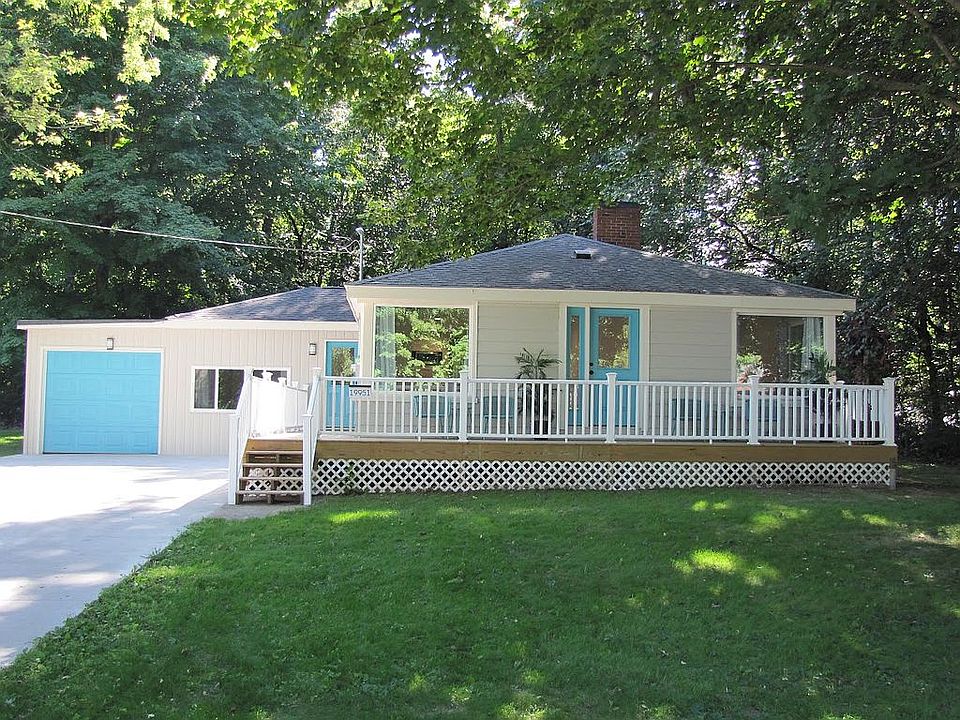 We work with buyer's agents and pay your full commission!!! Beautiful, fully renovated spacious ranch house across the street from Fishers Lake-- outside city limits with lower taxes, plus a well and septic so no monthly water/sewer charges. Hard-to-find FOUR bedrooms, and over 2300 finished square feet. Features included refinished hardwood floors on main level, neutral carpet in newly finished basement, and tile in both bathrooms and laundry room. All new doors and many new windows (including huge, beautiful picture windows) throughout. New whole-house electrical includes panel, all-new light fixtures inside and out, and ceiling fans with remotes in living & family rooms. New mechanicals include furnace, A/C, water heater and well pump. New septic drain field. New concrete driveway with parking for multiple vehicles. Automatic garage door with opener. Huge (32x21') new front deck with doors to living room and family/bonus room. Huge (26x12') back patio to enjoy your wooded, private backyard. 3 nice-sized bedrooms upstairs and 1 downstairs. Upstairs bathroom is fully renovated and boasts a double vanity with Carrara cultured marble top, and deep soaking tub. Nice downstairs 3/4 bathroom is right across the hall from the 4th bedroom with egress window and large closet. Laundry room comes with stainless steel washer and dryer. Situated between Mendon and Three Rivers Schools. 7 minutes to Three Rivers Middle/High School and Hoppin Elementary, 9 min to Mendon Elementary,