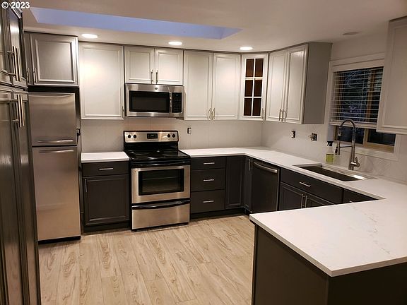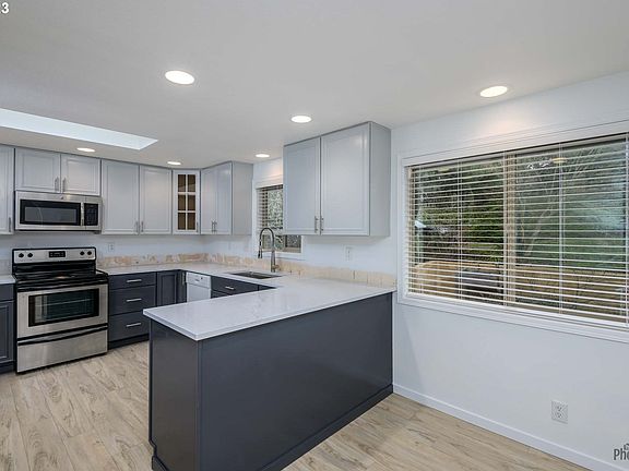 - Features: Eating Area, Pantry, Skylight, Laminate Flooring, Peninsula