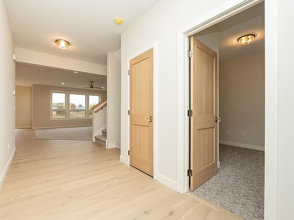 Wonderful custom built 2 story by Shaughnessy Construction! White oak cabinets, white oak engineered wood floors, quartz countertops, white oak paneled doors, champagne bronze hardware & faucets, maintenance free composite deck, LP siding on front of the home, black exterior & white interior Andersen windows, tile primary bathroom floor and shower, upper level laundry, two offices, gas stone fireplace, open floor plan, walk-in pantry, mudroom, 4 bedrooms on one level, walk-in closets & dual vanities. Insulated, heated & fully finished garage with drain. Basement is dug 3' deeper in an area for golf simulator and more. Excellent views in an outstanding neighborhood!