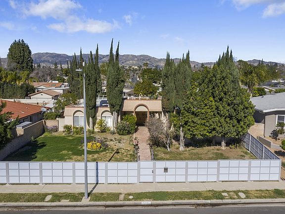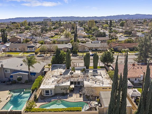 Gorgeous, fully gate pool home populated by tall prominent trees in a sought-after neighborhood of prestigious Chatsworth! Beautiful landscaping and a huge front porch delight visitors before an impressive double door entry opens into this enormous 2,919-sqft single-story home. Be greeted by a luminous entryway that branches off into a spacious living room and large formal dining room which share a double-sided raised hearth fireplace. A versatile secondary dining room leads into a lovely kitchen enhanced by quart countertops with a waterfall breakfast bar, wood cabinets, built-in stainless-steel appliances, and recessed lights to fully illuminate the room. Just off the kitchen is a convenient laundry room and a huge family room offering plenty of extra space plus storage. Bedrooms include ceiling fans and built-in closets. The huge primary bedroom offers the exclusive benefit of a walk-in closet and a beautifully bright en-suite bathroom fitted with ample storage, glittering stone countertops, a vanity space, walk-in glass shower, and private side yard access. Journey outside and bask in the glorious warmth of that SoCal sunshine from the immersive waters of a private in-ground pool and open patio areas, perfect for versatile entertaining and relaxing leisure time all-year-round. A coveted Chatsworth property located nearby CSUN, Northridge Fashion Center, Trader Joe's, Sierra Canyon School, markets, restaurants, shops, freeways, and more! A stunning gem poised for taking!