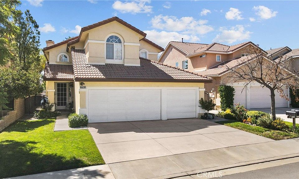 Gorgeous move-in ready 4 +3 home located in the heart of Santa Clarita! Located on a quiet cul-de-sac, this home features a formal living room with 2 story ceilings & large windows letting in lots of natural light, formal dining room, family room with fireplace, great views of the backyard and is open to the kitchen. The eat-in kitchen has granite counters, recessed lighting, white cabinets and included refrigerator. There is a main floor bedroom & bathroom, and the laundry room is conveniently located with included washer & dryer. Outside you'll find a low maintenance, spacious backyard with covered patio, large grass area and great views of the neighborhood lights and mountains. Upstairs there is a large loft, perfect for an office or playroom, the primary suite has an ensuite bathroom with separate shower & tub, double sinks and large walk-in closet. There are 2 more bedrooms with ceiling fans and another full bathroom with double sinks and shower/tub combo. The home also features a 3-car garage and spacious driveway. No Mello Roos and no HOA! Located close to award winning Plum Canyon Elementary School, David March Park, shopping, restaurants, and so much more!