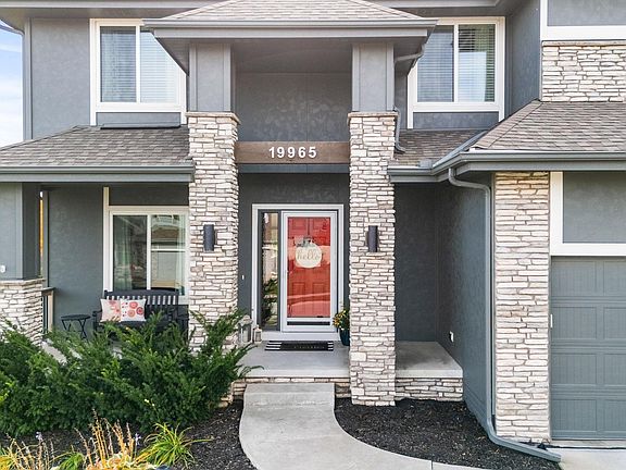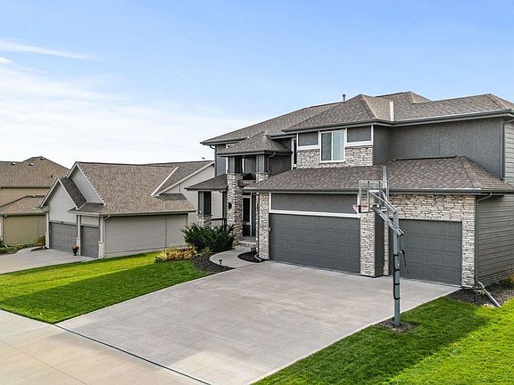 Welcome home to your modern-meets-cozy retreat! This like-new 2-story feels light, bright, and full of warmth from the moment you walk in. Oversized windows flood the open living area with sunshine, and the floor-to-ceiling stone fireplace makes the perfect spot to curl up on chilly Nebraska nights. The kitchen is designed for gathering - quartz counters, a spacious island, gas stove, and hidden pantry make cooking and entertaining a joy. A flexible front room doubles as an office, dining, or cozy reading nook. Upstairs, every bedroom has a walk-in closet, and the primary suite feels like a personal spa with its custom tile shower and direct laundry access. Thoughtful details like the drop zone and back stairway add everyday convenience. With warm finishes and a welcoming flow, this home blends modern design with true comfort - ready for you to move right in and make it yours.