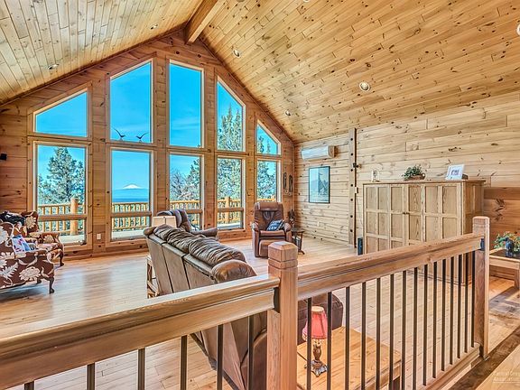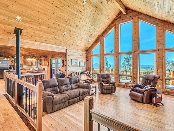 Country living at its finest. Luxurious log home on 5+ acres with end of the road privacy and views of both the Cascade Mountains AND Smith Rock, which makes the property a rare find. The perfect set up for cattle and horses with BLM out the front gate, which makes it easy to enjoy long trail rides. Along with the home, there is a furnished 828 sqft. cabin/guest quarters, hay shed and shop. The spacious home has radiant heat, wood floors, large western facing windows and a covered porch. The open living room and kitchen area that flows naturally onto the deck is perfect for entertaining. Kitchen is a chef's dream and includes stainless steel appliances, tile counters and an island.