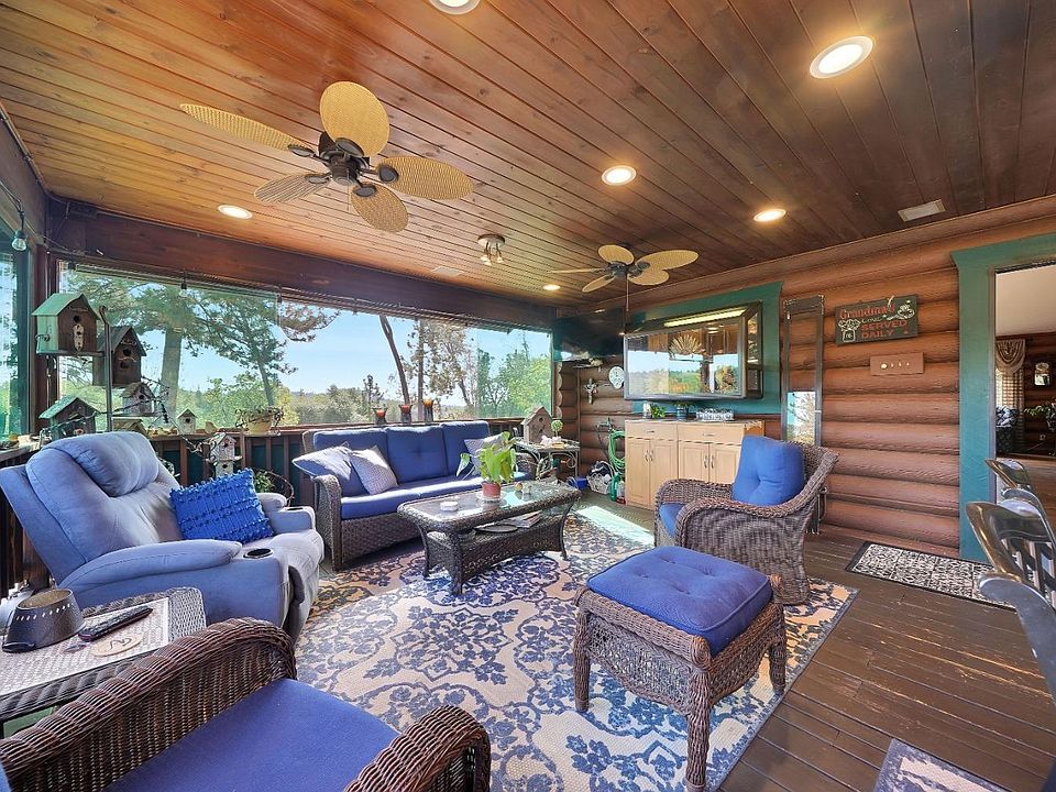 Entertainers delight! This property has had many parties; horse shoe pits, terraced yard with lawn, water fall, decking to enjoy the private setting with awesome views and a wonderful enclosed sunroom. The main level offers a tile entry, wood flooring, efficient kitchen layout, cozy living room, master suite, guest bathroom, awesome sun room, and downstairs there is a family room with glass sliders leading to the cool outdoor area on those warm summer days. 2 car garage, plus a shop, R.V. Storage with water/electricity hook-ups behind the garage, along with attic storage above the garage. Heat/Air replaced November 2024. Generac generator included. Kitchen cabinets have pull outs. Fruit trees;2apple,3cherry and 1appricot. Koi pond. Home has been maintained and shows pride of ownership.