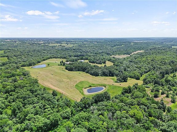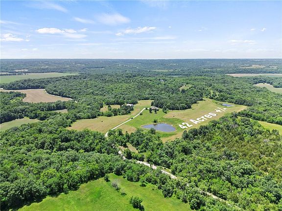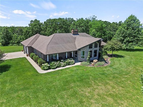 AWARD-WINNING LAWSON SCHOOLS! BEAUTIFUL CUSTOM-BUILT FULL BRICK RANCH ON 42+ ACRES! This stunning home sits perfectly in the midst of a combination of timber/hay/cleared acreage - with TWO ponds and a 40x60 outbuilding. From the moment you step inside, you are greeted with a aw-dropping brick fireplace. It is truly the focal point of the great room, and is adjacent to a wall of floor-to-ceiling windows overlooking one of two ponds.