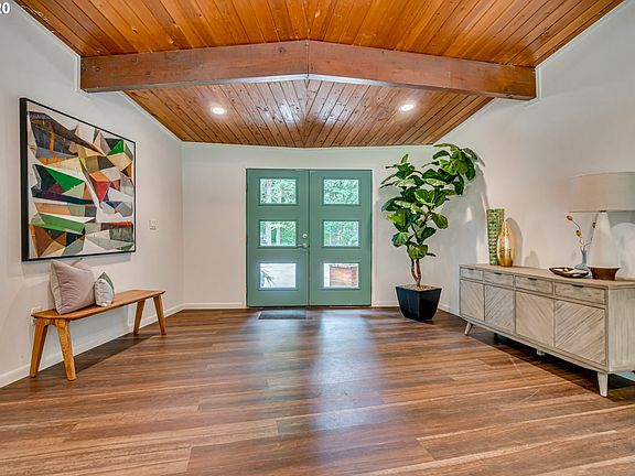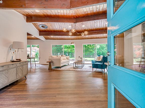 Gorgeous Mid Century Modern home with vaulted beamed ceilings and walls of windows. Let the outside in! Recent down to the studs remodel makes it better than new! Bonus room could be in-law quarters. Almost 3 acres of trees and lawn invites all sorts of wildlife including your own herd of deer! Huge multi-use workshop for your projects or toys. Close-in country living! (measurements are approx)
