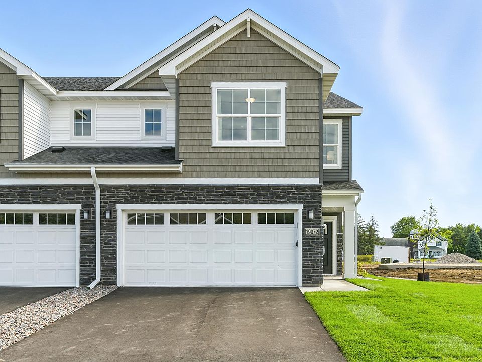 MODEL HOME FOR SALE! JP Brooks presents the Grandview END UNIT MODEL townhome plan in Corcoran’s Hope Meadows community—a brand-new townhome development near Pheasant Acres Golf Course and just a short distance from Elm Creek Park Reserve. Experience an unmatched outdoor lifestyle with miles of trails, lakes for kayaking, and year-round activities. Enjoy peaceful living with the conveniences of nearby shopping, dining, and easy access to major roadways connecting you to the Twin Cities and beyond. The main level features a spacious living room with an electric fireplace, open dining area and roomy entryway. The kitchen showcases white cabinetry with stainless steel appliances, a walk-in pantry, tile backsplash, gas stove, large center island with single basin sink and quartz countertops throughout the home. Half Bathroom on main level. The upper level includes a loft area, laundry room and 4 Bedrooms with walk-in closets. The primary suite offers a vaulted ceiling with ceiling fan, double sink vanity, luxury tiled shower, linen closet and a huge walk-in closet! The exterior of this end unit offers an exclusive side yard in addition to it's 10’x6’ backyard patio for outdoor enjoyment and HOA-maintained landscaping and snow removal for low-maintenance living. Onsite-finished trim for a high-quality look. Come tour today!