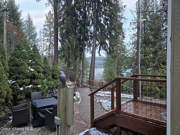 LAKE RETREAT WITH BOAT SLIP. Perfect weekend getaway, year-round residence, or rental. Situated on the shores of Lake Coeur d'Alene, this secondary waterfront property features shimmering views of the nearby lake, framed by fir trees. The residence offers easy year-round access via a county-maintained road and a concrete driveway. Located in the highly sought-after Woodland Shores community within Rockford Bay, homeowners benefit from exclusive access to a private marina, including newly renovated docks and a dedicated swimming area. The seller will fulfil their portion of the marina renovation costs, allowing the buyer immediate access to boatslip and other enhancements. The lot is prepared for the construction of a larger home; however, the current residence—classified as real property—is fully equipped with electric service, a private well, and septic system. Recent improvements include a new roof, heat pump, wood stove, energy-efficient double-pane windows, Nest thermostat, furnace, and water heater. Interior upgrades feature fresh paint, luxury vinyl plank flooring throughout, and modern appliances. Remodeled bathrooms now offer contemporary walk-in showers, while the private well is supported by a conditioning system. Starlink High-Performance internet provides reliable high-speed connectivity. Conveniently located near US-95 connecting to Coeur d'Alene, Black Rock Golf Club, and Circling Raven Golf Club. Also within minutes of the popular Shooters Bar & Grill, and other local amenities.