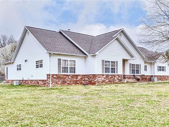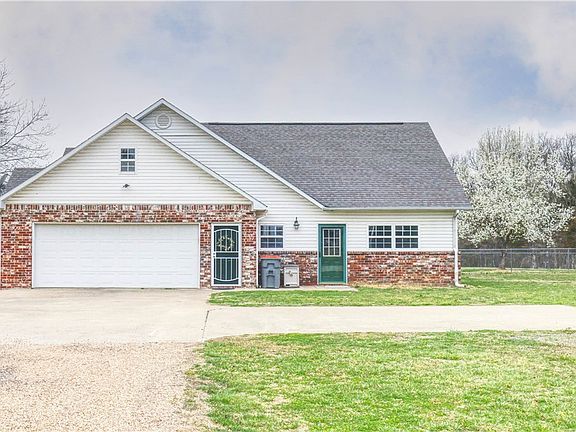 Come enjoy country living with 5 acres of flat land, home, and large 50x35 heated/cooled shop located just 20 minutes from downtown Rogers, and a short drive to Lost Bridge Marina and Beaver Lake. This home comes with 3 spacious bedrooms, an office that could be used as an additional bedroom, and 3.5 bathrooms. There is an in-law suite with a kitchenette, and its full private bathroom. The large open living room has a wood-burning fireplace. There is a spacious kitchen with plenty of counter space, an island, and a breakfast nook. The home also has a formal dining room, and formal living room space! Above the garage, you will find a finished flex room perfect for a game room or extra storage. A portion of the yard has a chain link fence perfect for your pet. Public water was run to the house in 2023. The home has all new toilets, new light fixtures, new french doors, new flooring, and new paint. The roof is two years old.