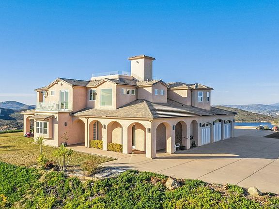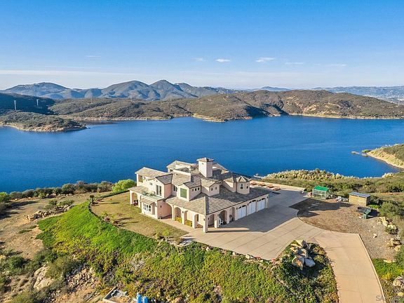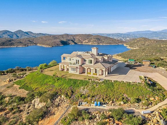 Stunning Mountain-Top Retreat with Breathtaking Views, this contemporary 4-bedroom, 5.5-bath masterpiece offers some of the most spectacular panoramic views in the area. From the moment you arrive, you'll be captivated by the water views that surround you. The Olivenhein Reservoir borders the property, while Lake Hodges winds gracefully through the rolling hills below, and the Pacific Ocean sparkles on the horizon. On clear days, the islands of Catalina & San Clemente are visible in the distance. Sunsets from this home are nothing short of extraordinary your private oasis to unwind and take in the natural beauty that stretches out before you. Whether you're relaxing or entertaining, this home offers multiple levels to enjoy the views and ambiance. Choose from the pool deck, second-floor balcony, or take a private elevator to the rooftop deck perfect for sunset cocktails. Designed with entertainers in mind, the open-concept layout seamlessly flows from the gourmet chef's kitchen to the outdoor living spaces. The kitchen features high-end Wolf appliances, a Sub-Zero refrigerator, and a sleek leathered granite center island. Custom cabinetry, a spacious walk-in pantry, and top-of-the-line finishes complete this culinary haven. Two well-appointed bedrooms with en-suite bathrooms are located on the lower level, ideal for extended family. Upstairs, the expansive master suite offers a private deck with breathtaking views of the Olivenhein Reservoir. Spa-like master bath is a true retreat, with a pebble-accented walk-in steam shower. a large soaking tub, and dual walk-in closets The second bedroom and a spacious game room, both with stunning views, are also located on the upper level. This home also includes an oversized 3-car garage with an epoxy-coated floor and ample storage space. With high ceilings, wide accordion doors, and seamless indoor-outdoor flow, the space is perfect for relaxed living or hosting gatherings. The property spans TWO parcels (totaling 3.09 acres) and is located in an area known for its hiking and biking trails. You'll also be close to shopping, restaurants, parks, and top-rated schools