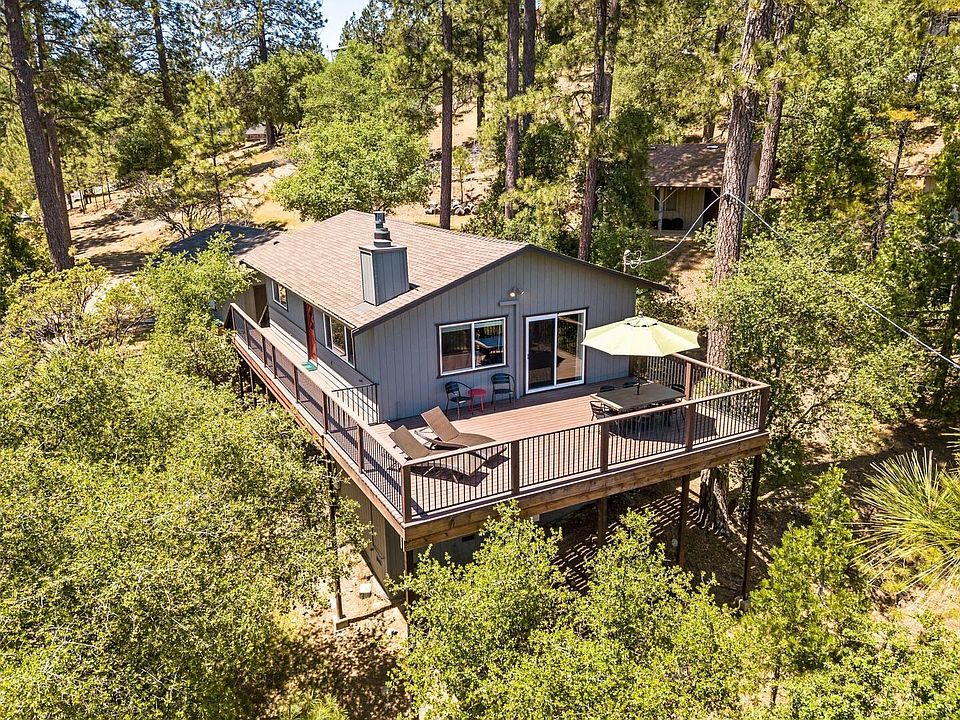 If you're looking for a full time residence or vacation home, 19976 Ridgecrest Way has everything you need! You'll feel right at home in this tastefully updated house located in the gated community of Pine Mountain Lake. You'll love the sense of seclusion from the moment you drive up. Featuring 3 bedrooms and 2 full bathrooms, this home comes completely furnished with everything you need to start enjoying life in the mountains today! Nestled among Ponderosa Pines you'll enjoy the private deck with beautiful views. Inside, you'll find new flooring, an updated kitchen, as well as contemporary furnishings. Energy efficient mini splits provide heating and cooling. Head downstairs to the game room complete with a full bathroom, two beds and a laundry nook. The detached 2-car garage offers plenty of storage and has a brand new roof. The exterior of the home was repainted with stylish colors in 2023. You're just a short walk to Marina Beach where you can enjoy relaxing and playing on the water. Other amenities include championship golf, restaurant and bar, tennis, pickleball, archery, equestrian center, swimming pool and community airport. The home is a 25 minute drive to the main gate of Yosemite National Park where you can experience one of the most beautiful wonders of the world!