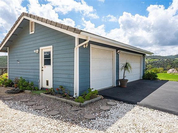 Perched atop beautifully landscaped 11.7 acres w/Gorgeous views!!! Impeccably maintained 4 BD/3BA 2472 sf home w/owned solar & well water to care for the lush landscaping, orchards & abundant gardens that make this home a special private oasis. Beautiful wrought iron electric gate leads you up a long driveway to this exquisitely appointed home. The beautiful gourmet kitchen boasts Brazilian granite counters, & plenty of cabinets for storage. Bathrooms have crystal counters lit from beneath. See Video!