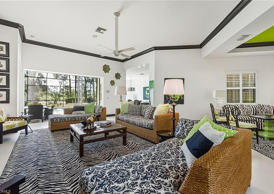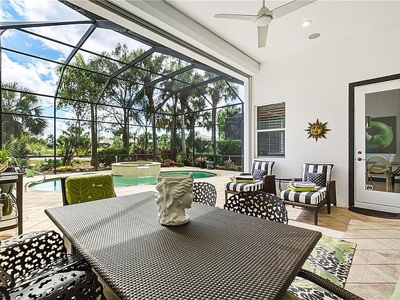 Glamour Meets Whimsy....A Bold Art Deco Retreat -Nestled within the popular Villa Grande community of Grandezza Country Club, this exquisite home combines vibrant design elements with natural harmony in a tropical setting. From the moment you step into this 3-bedroom, 3- bathroom home with a versatile den, it unveils a lifestyle of comfort and brilliantly selected color accents. This home views the signature 6th hole creating a captivating backdrop. The living spaces are adorned with custom finishes that showcase the home's bold personality. The thoughtfully designed custom-renovated kitchen is where form meets flawless harmony with sleek soft-close drawers, custom pull-out cabinetry for effortless organization, quartz countertops and high-end appliances that make cooking an elevated culinary experience. The primary suite offers a custom-designed space where water views greet you each morning and serenity flows into the beautifully renovated functional bathroom, complete with sleek glass-enclosed shower to elevate your daily rituals with great comfort. Enjoy the southwest facing screened pool and entertainment oasis designed for effortless indoor-outdoor year-round relaxation. This meticulously maintained turnkey 3 -car garage home is move-in ready! Grandezza Country Club is known for it's friendly atmosphere, premier 18-hole Championship Golf Course, tennis courts, cabana, Olympic size pool, fitness/wellness center, fine/causal dining and a host of social activities and amenities. Minutes from I-75, SWFL International Airport, FGCU, shopping and restaurants, this home is ideally located in booming Estero, FL.
