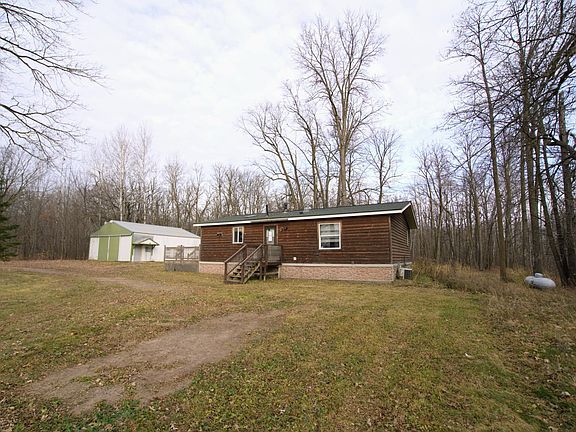 Beautiful wooded setting near Knife Lake on 2.5 acres! This 2BR/2BA home features an open kitchen and living area with a sunken living room and central air. The primary bedroom includes a walk-in closet, private 3/4 bath, and access to its own deck—perfect for relaxing outdoors. A second full bath is conveniently located on the main floor. Enjoy outdoor living with two decks, plus a spacious 32'x36' insulated pole building with a concrete floor—ideal for storage, hobbies, or a workshop. With just a little finishing work, this property could truly shine! Bank owned. Sold AS-IS.