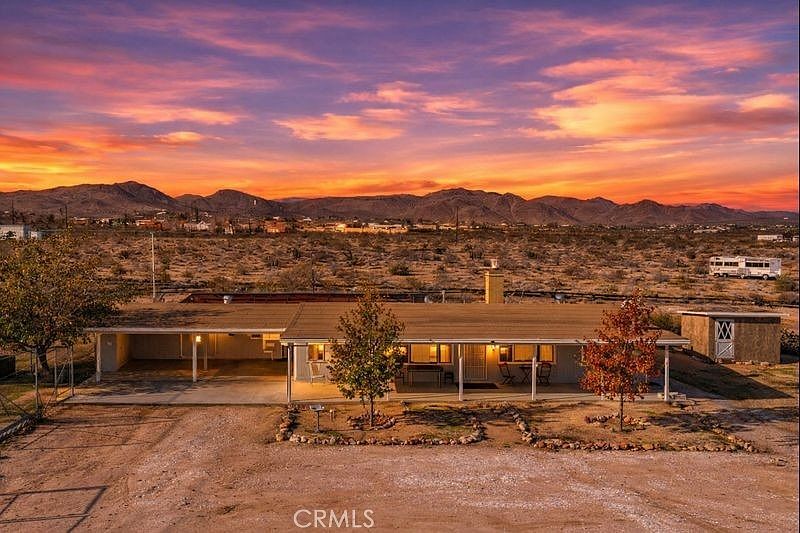 Welcome to 1998 Cambria Avenue in Landers, a spacious two-bedroom (with 3rd optional room), two-bath home set on a full five-acre lot with unforgettable sunrises over Goat Mountain—the owner’s favorite way to start the day. The property features laminate and tile flooring throughout and new dual-pane windows that bring in natural light and capture beautiful desert views. The first bedroom includes a walk-in closet and a mini-split system for efficient heating and cooling. The kitchen offers stainless steel appliances and marble countertops, flowing into a dining area with an open-beam ceiling that adds character and warmth. The primary bedroom also has a mini-split, along with a walk-in shower and an adjacent laundry area with a toilet for added convenience. Outside, the expansive acreage showcases classic Landers charm with mature desert foliage and open space ideal for recreation and relaxation. Just moments away from iconic local attractions such as Giant Rock, King of the Hammers, and other area landmarks, this property captures the unique appeal that draws so many to Landers.