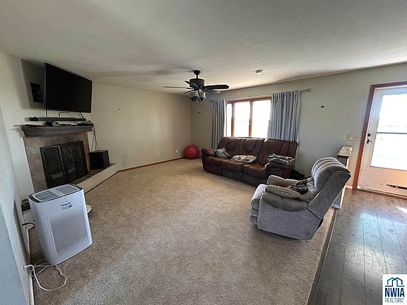 Come check out this charming 2 bedroom, 3 bath ranch home on 1.5+ acres just north of George, IA on a hard surface road. Offering over 1,400 sq ft on the main floor, this home features a spacious living room with cozy gas fireplace, dining room with slider to a bright 3-seasons room, and a large kitchen with abundant cabinetry. The master suite includes both a large closet and a cedar closet, while an additional bedroom shares a full bath. A convenient office and guest half bath complete the main level. The lower level boasts a family room, two non-legal bedrooms, 3/4 bath, laundry, and ample storage. Don't miss this great opportunity.