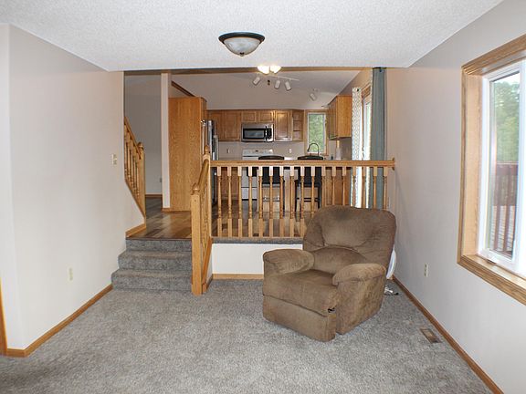 New Roof and Siding on the home and garage. Located in a nice quiet neighborhood. If you are looking for a private setting in the country this beautiful 5.42 acre property is for you. Nice deck overlooking a very serene back yard, Plenty of new updates including new windows were replaced on the shop. New deck patio door, new living room window and kitchen counter tops. Fresh paint, flooring and carpet through out the home. Plenty of unfinished area in the basement for storage or to be finished later. The detached garage is insulated and heated. Living Room Has the rough in behind finished wall for gas fireplace. This home is also set up for future water softener.