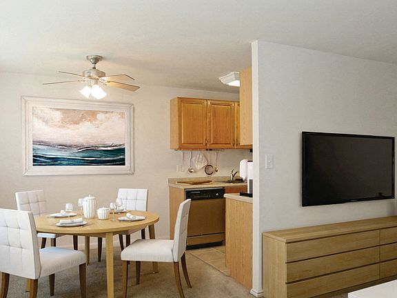 Our Coram apartments for rent are just as inviting. With six different styles to choose from, Pinewood Village has an apartment for revery rental need. Warm tones blend with spacious studio, one, and two-bedroom layouts to create a welcoming ambiance. You have a stylish dining area that melds with light-filled living spaces where you can unwind. Soft carpeting is present, along with large closets, air conditioning, and spotless kitchens with stainless-steel appliances.