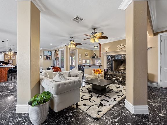 Inviting poolIsland and breakfast barDouble ovens and cooktopMarble and hardwood flooring