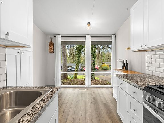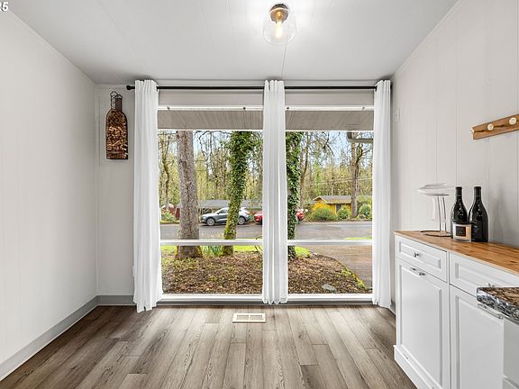 Rare affordable one level in West Linn. Hurry on this mid-century modern gem. Optimal floor plan with 3 bedrooms and 2 full bathrooms. Lives large with vaulted ceilings and floor to ceiling windows throughout. Remodeled kitchen with shaker cabinets, granite countertops, tile backsplash, stainless steel appliances and gas range. Updated bathrooms with stylish tile details, newer lighting and vanities. Large fully fenced private backyard with deck and shed. Spacious 2 car carport with 250 kW EV charger and extra storage space. Newer composition roof and newer electric panel. A+ location across the street from Mary S. Young Park and the Willamette River. Near shops, dining, and highly rated schools.