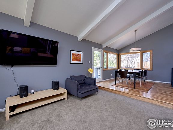 Spacious, light-filled south-facing modern home on a 1/4 acre private lot in central Boulder. 3 beds/2 ba up + guest suite & large rec room on lower level. 2 living areas on main, gas fireplace, +separate dining area. Hardwoods on main. Open floor plan. Kitchen SS appliances & granite countertops. New Anderson windows at $42k. LG A/C in master. 2 big storage areas in bsmt. New exterior & interior paint. New hot h20 heater. Large composite deck surrounded by flowering trees for privacy.