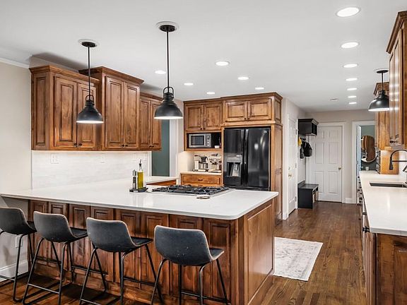 This home may appear to be a classic ranch-but step inside, and you will discover a delightful surprise. The inviting floor plan strikes the perfect balance between openness and coziness, creating an easy flow for both everyday living and entertaining. The chef's kitchen features custom wood cabinetry, new quartz countertops, a stylish backsplash, and updated hardware-all with a view to the comfortable family room. A charming fireplace anchors the space, offering warmth and ambiance during cool fall and spring evenings. A screened porch off the kitchen and dining area provides a serene view of the surrounding woods making this an ideal spot to enjoy morning coffee or host friends for a relaxed evening. Renovated bathrooms bring a touch of modern luxury, while rich hardwood floors create a warm, cohesive feel throughout this home. Expansive terrace level, filled with natural light, flows through double French doors to another deck and extends your living options with a flexible layout. The convenient kitchenette and full bathroom create a superb space for a private suite when guests, friends or extended family visit. Nestled among mature trees, this home feels like a private retreat yet minutes from premier dining, boutique shopping, and major highways. In an exceptionally friendly and established community, you will enjoy both tranquility and convenience-a rare combination that defines modern luxury living.