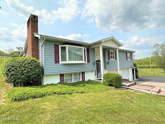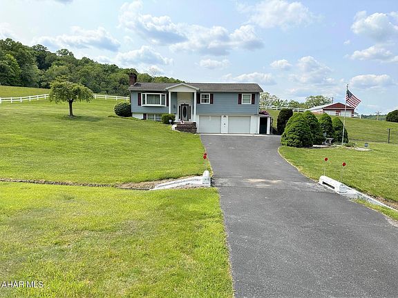 Well maintained bi-level home offering 11.46 scenic acres!! This home offers a living room, dining area, kitchen, three bedrooms, a full bath and a half bath on the main level. The full basement has a finished family room with a fireplace and two-car integral garage. Rear screen porch to relax and enjoy scenic views and front and rear covered porches. Heat pump with central air and electric baseboard heat. Detached heated 30'x48' garage, 14'x24' garage and 12'x22' garage. Paved driveways, open and wooded land, and a large yard to roam. Very close to HB&T rail trail, the Juniata River and Lake Raystown.