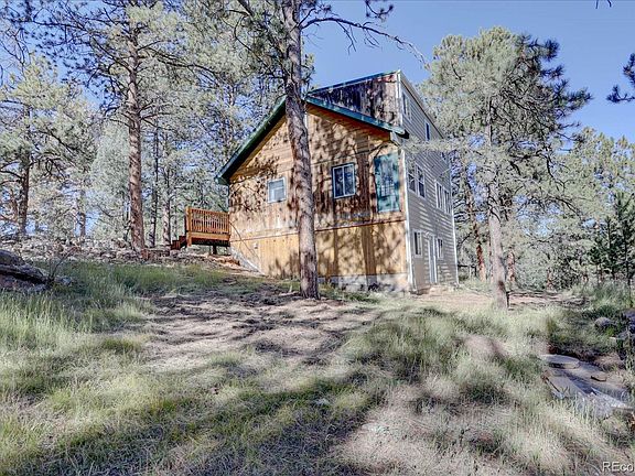 Set a time now to see this 3-bedroom, 3-bathroom home in a peaceful neighborhood where deer wander freely and the mountain lifestyle unfolds right outside your door. Resting on a flat, usable acre surrounded by trees, this property offers privacy, space, and the chance to create the mountain retreat you’ve been dreaming of. Inside, the open layout provides room to gather and grow, while the upstairs bedrooms’ mountain views remind you daily why you chose Colorado. The exposed beam ceilings with tongue-and-groove wood planks creates a timeless mountain aesthetic, a style often found in ski cabins and rustic contemporary homes, adding warmth, architectural character, and a natural feel to the space. The fenced area is perfect for pets to roam safely, and there’s ample space to add a garage or workshop. Recent updates include many new windows, half the roof replaced with durable metal, and new cement siding on 2 sides of the home. While the home needs some finishing touches, it’s priced to reflect the opportunity, inviting you to bring your vision and make it truly yours. Whether you imagine cozy nights by the fire, mornings watching deer graze, or weekends spent exploring the foothills, this home is a canvas for the lifestyle you’ve been longing for.