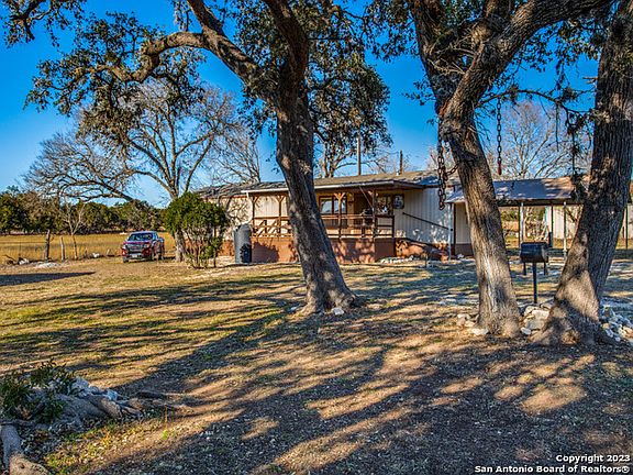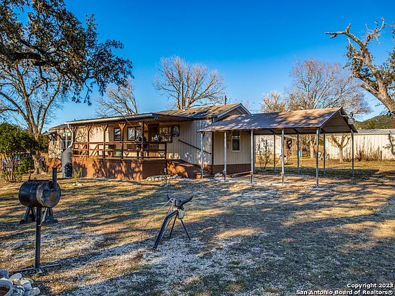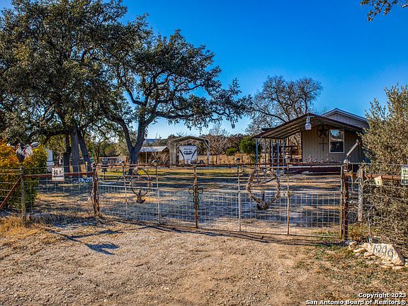 Medina - Front porches & TX Hill Country just go together! Come enjoy this rock'n front porch in the small town of Medina just off Stringtown. 2bed/2bath 1024 sqft/16w on 1/2 acre lot privides enough space to be quiet content! Whether a residential, recreational or investment property this little jewel may be just what you need, no HOA or DUES! This charming property is fully fenced, front gate, RV port, storage bldg/shop, wramped entry, front porch & a 500 gal water storage tank for you plants & trees. Large mature Oaks provided ample shade for recreational fun w/family & friends while a pecan, walnut tree, yellow roses & mature passion vine immerge come spring. The screened front door welcomes you in to this tidy home with plenty of living room & living space. Kitchen has breakfast bar, dishwasher, refrigerator, cabinets gallore, washer/dryer hook-up inside or outside option offering additional storage space. Extra large walk-in for Master, with privacy for both bedrooms at each end of home. Come stay or play in the beautiful Texas Hill Country but just get here!