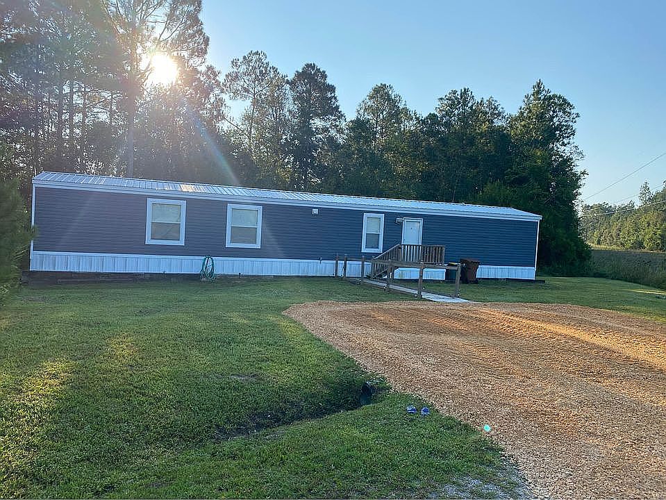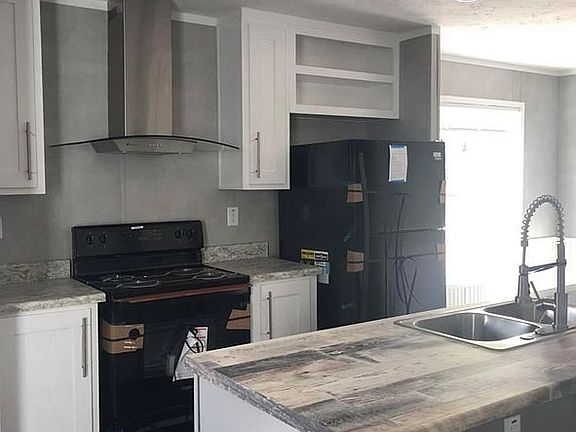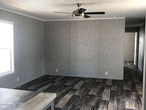 Beautiful new mobile home situated on .80 of an acre with freshly laid gravel parking pad. Home has 3 bedroom & 2 bath, master bathroom has a large soaker tub with walk in closet attached. Living room is large & open to the kitchen. Kitchen has a new glass top stove, a has the perfect island great for entertainment, with a dining area located off the kitchen along with laundry room located off the kitchen. All appliances come with, fridge, stove, dishwasher, built in microwave. Home is located on a quiet cul-de-sac, with a front porch & wooden walk way connected to the parking pad, & a back porch. This home is the perfect starter home.