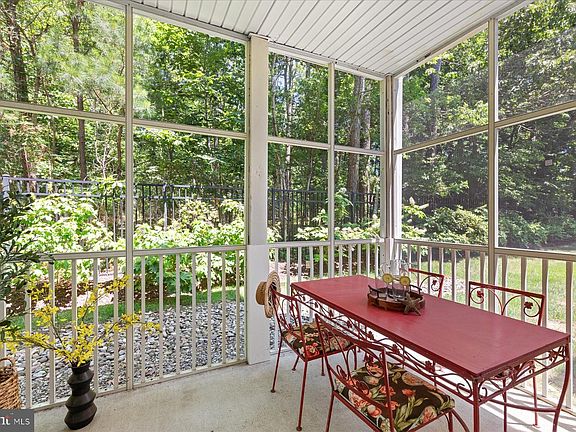Living space flows seamlessly from the dining area to the living room. Sliding glass doors bathe the open living space in natural light and lead to a charming screened-in porch that overlooks manicured landscaping, decorative fencing, and a tranquil view of the Breakwater Junction Trail beyond. Whether entertaining or relaxing, this outdoor space offers a peaceful extension of the home.