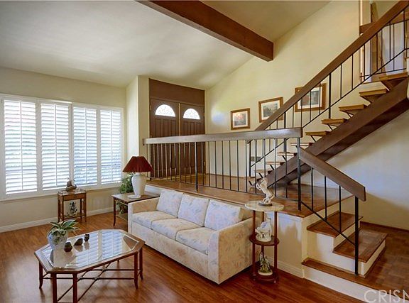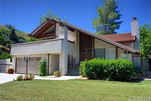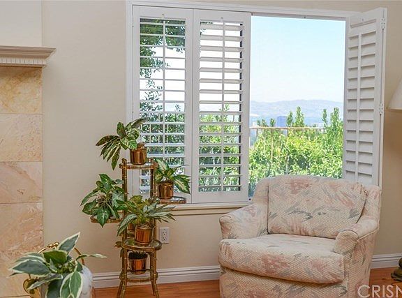 Priced to sell!!!!!South of Wells with city light and nature VIEWS! very private and secluded flag lot. Low maintenance yard with artificial grass. Double doors enter large formal entry foyer. House is almost 2,600 square feet which includes FIVE Bedrooms, THREE baths and Plantation shutters throughout. Large Family Room and Formal Dining. Living room features fireplace and cathedral ceiling and city views. Downstairs bedroom is perfect for guests or an office & includes a private bath (shower). Huge 17,424 sq ft lot that backs open space is very private and serene . Large master bedroom with soaring ceilings,walk-in closet & patio with peek-a-boo city views. Bon Vivant community features tennis courts, club house and large pool - all with spectacular views of the San Fernando Valley! With a little updating this jewel of a home could be your dream home!