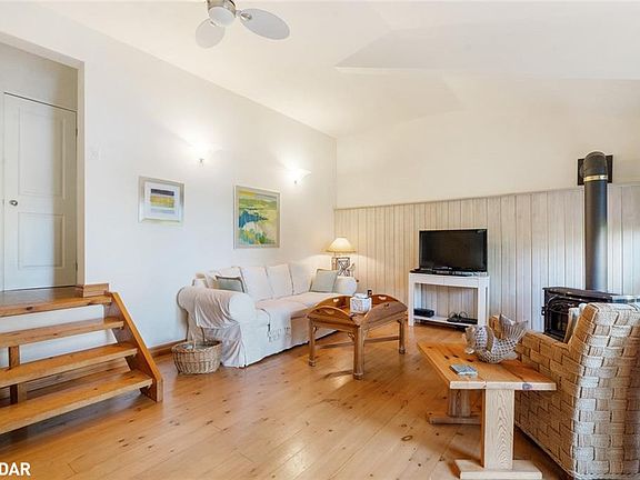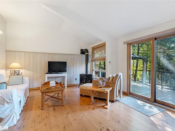 Presenting 199A Sugar Lake Rd! Nestled on the private and desirable Sugar Lake. Located on a quiet road, this 3-bedroom cottage offers over 1200 sqft of fully furnished &finished living space and features 111ft of sandy beach/shoreline. Sitting on over half an acre lot, surrounded by mature trees, a picturesque stream with a waterfall, this beautiful property is perfect for families seeking a peaceful, family-friendly setting just outside Parry Sound. Ideal for creating long-term memories in your dream cottage on the stunning shoreline with western exposure, with an additional self-sustaining sandbar. Inside, you're welcomed by a spacious layout, large windows, high vaulted ceilings, and accented with cottage charm. Natural light pours in through the large windows, looking out onto the scenic shoreline and tree-lined property. This stunning cottage features stunning wide plank pine floors, stainless steel appliances, a cozy fireplace, 2 full bathrooms, a main floor primary with 2 bedrooms upstairs, paired with a spectacular observatory. Easily converted into an additional bedroom, or living the possibilities are endless. Enjoy this amazing opportunity for yourself, or create a thriving investment opportunity. The beautifully landscaped lot offers privacy and a relaxing retreat. Major upgrades: Fridge (2022), 200Amp Service, Composite Deck, tempered glass railing(2015), upstairs bay windows (2010) Owned Hot Heater (2022), Gazebo (2020), Whitby Septic System, Lake Pump/Heat Trace, Front Deck (2016). This property is sure to impress!