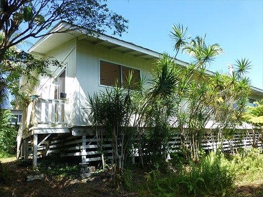 Come enjoy the spectacular views of Hilo Bay and the Puna coast! This home is built with attention to quality, throughout. Floor to ceiling windows allow for endless views. This unique home boasts Mango trim, counter tops, cabinets and even a Mango refrigerator nook, in the kitchen area. A skylight allows abundant light and ambiance while enjoying the culinary arts. Exposed beam ceilings allow for an open, unobstructed ambiance in the living room, with the natural wood highlighted against the pearl white ceiling. The lanai faces Hilo Bay with Trade Winds keeping the area cool and comfortable, during barbecues or entertaining. Only minutes to downtown Hilo, yet comfortably nestled on the Mauka(mountain) side of town, this special home awaits you.MLS listing information and Public Records are thought to be reliable but accuracy cannot be guaranteed. Actually square footage needs to be determined in an appraisal report. Buyers should verify any information they deem material or important to their purchase.
