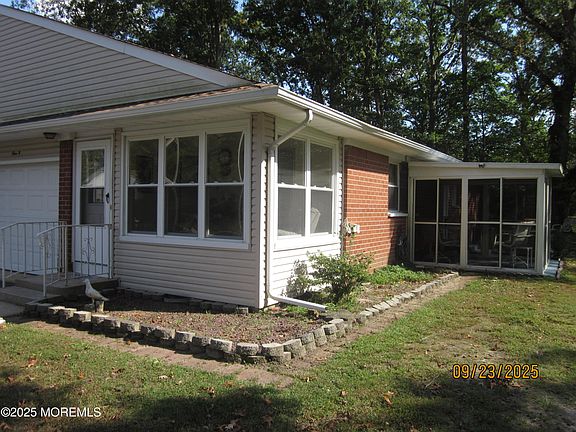 Welcome to Crestwood Village Two. This lovely2 bedroom, 1 1/2 bath Sherwood model, on a cul-de-sac, has a large, wooded & flat private property. Brand new central air, refrigerator, stove, metal attic stairs, carpet in both bedrooms and is newly painted. It has a heated front sunroom, as well as screened in patio which is accessible through the spacious eat-in kitchen. Ceiling fans can be found in all rooms. In the laundry room is access to a floored attic the width of half of this home, perfect for additional storage.