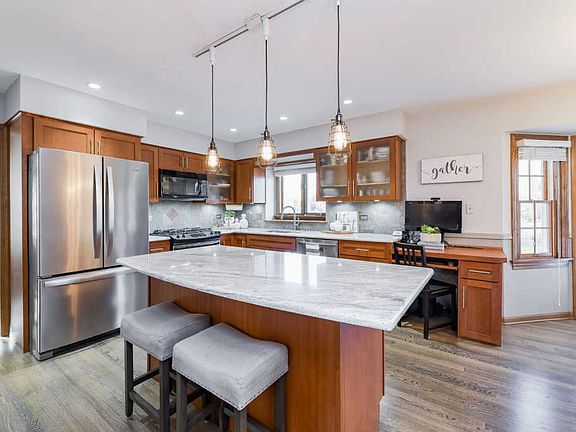 Here is everything on a buyer's wish list! All the big ticket updates are done! Step into the grand two-story entrance foyer that flows to the remodeled kitchen with custom solid cherry cabinets, granite countertops, stainless steel appliances, recessed lighting, island with breakfast bar, backsplash, desk area, walk-in pantry, large eat-in space with bay windows, hardwood floors and door to deck and backyard. The family room is enhanced with cathedral vaulted ceiling, hardwood laminate flooring, built-in bookshelves flank the marble faced wood burning fireplace with gas starter and the large bay window floods the space with natural light. The first floor half bath is updated with a newer toilet and vanity with glass crackle top and vessel sink. The large living room has a wall of built-in shelving and storage cabinets. You will really appreciate the large mudroom! Moving upstairs there is a coveted second floor laundry room with counter and cabinets. The master suite has hardwood laminate flooring, volume vaulted ceiling and a huge walk-in closet. A major highlight is the totally remodeled master bath...it is gorgeous!! Wait until you see the walk-in shower with frameless glass surround, modern tile shower and flooring, vaulted ceiling, new double sink vanity with armoire storage and sleek free standing soaker tub. Bedroom 4 is huge with its own sitting room/office area/play space. The second floor hall bath has a new toilet, new vanity and floor tile. Bedroom 2 has a vaulted ceiling. The finished basement is freshly painted in today's modern color with two huge storage rooms with tons of shelving and 6' workbench. Step outside to appreciate the James Hardy siding, oversized gutters, new composite deck, oversized garage and newly refreshed landscaping. The roof and 2/3 of the windows have been replaced, plus Lenox furnace and air conditioner in 2016, all lighting updated, refinished floors and freshly painted throughout. Minutes to the Wheaton and Winfield Metra train and downtown areas for restaurants and shopping. Walk to the elementary school, Wheaton Christian Grammar School and 5 minutes to the high school. Close to Central Dupage Hospital.